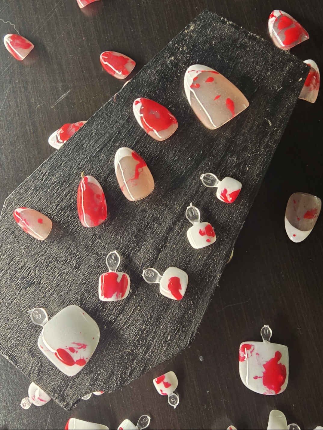Mani pedi pack includes 24 finger nails and 24 toenails! All handpainted, quality gelx tips. Sizes 0-11 used in short almond, size guides available